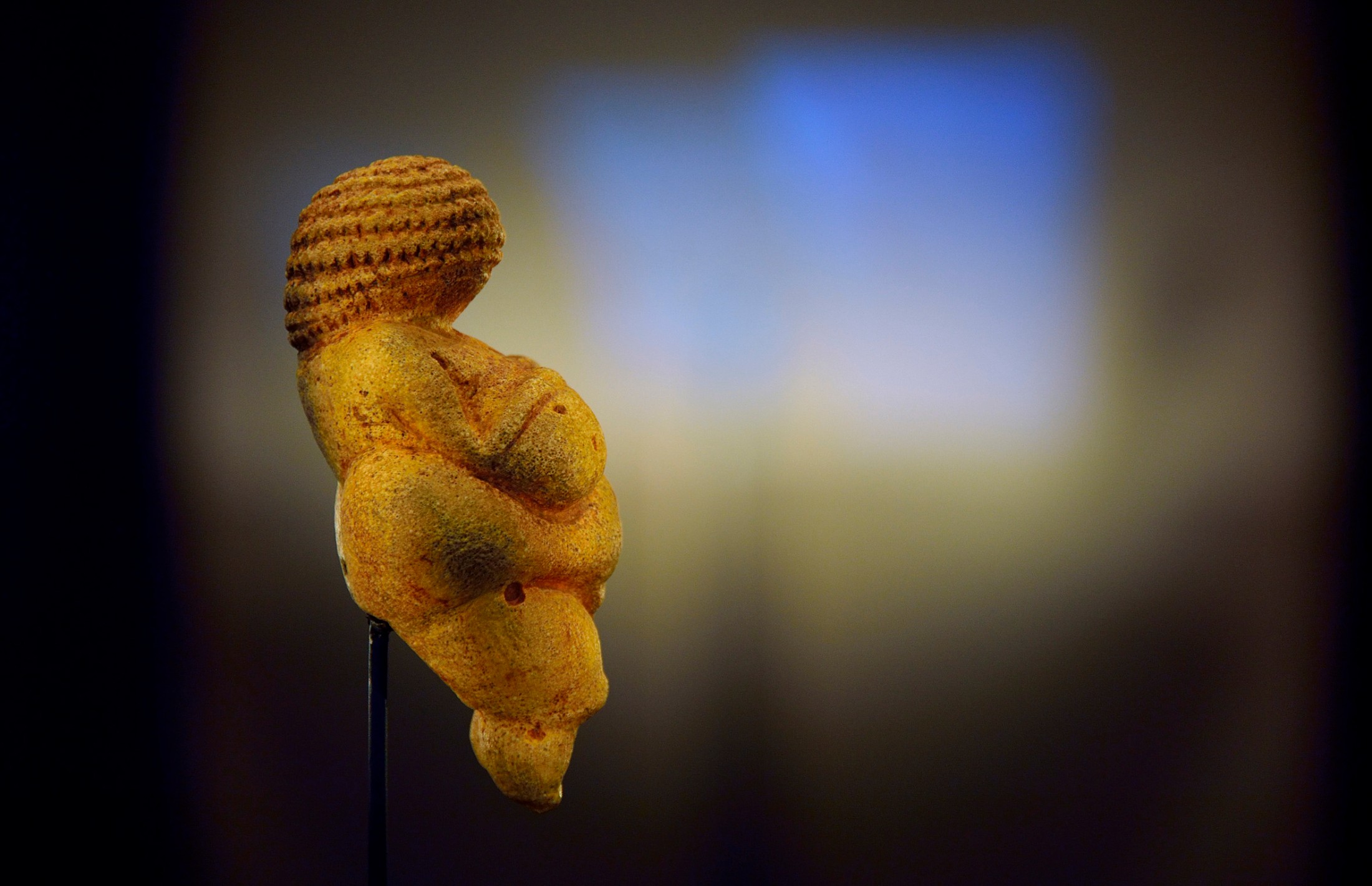 Walter Prenner legt die Venus von Willendorf in ihre neue Vitrine