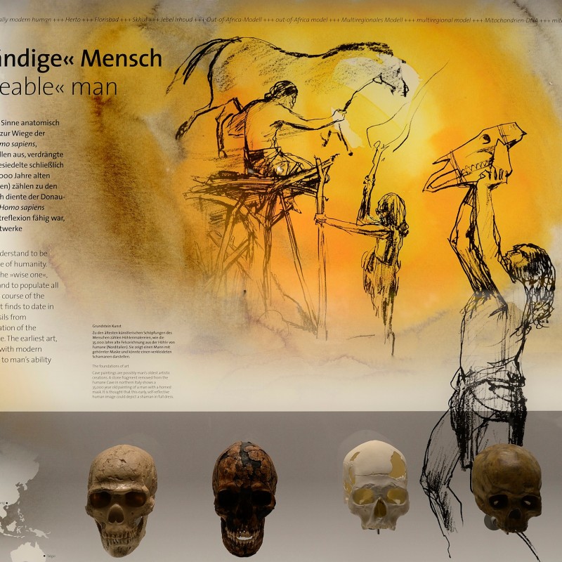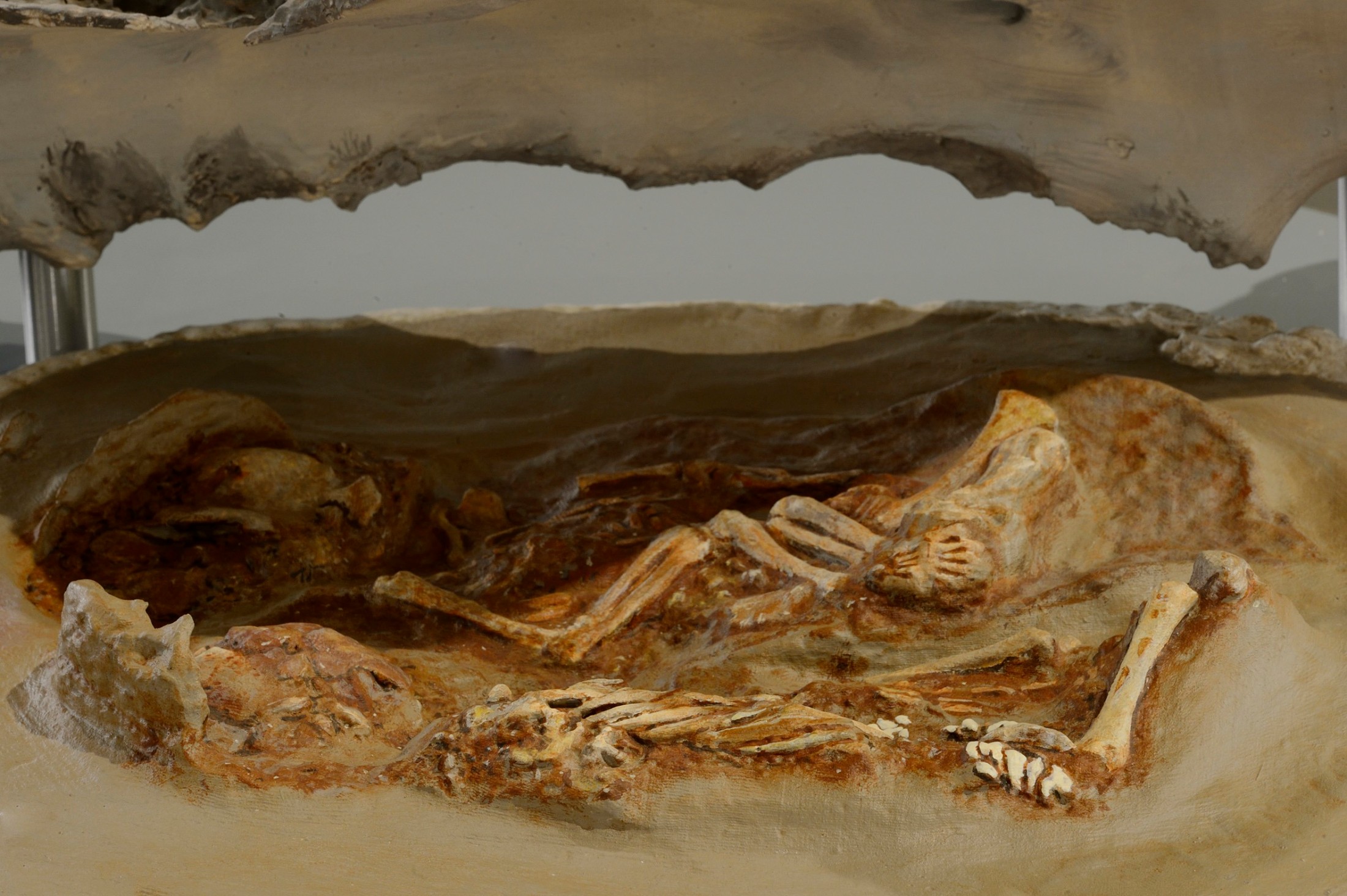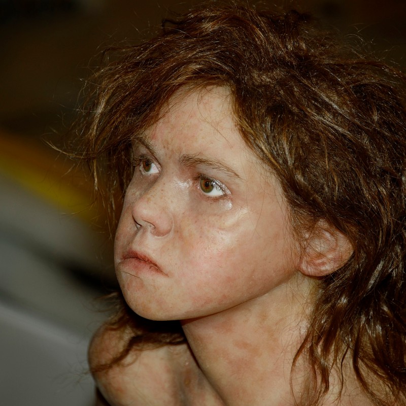 Rekonstruktion der im Jahr 2005 entdeckten Zwillinge vom Wachtberg in Krems an der Donau, die ? geschützt vom Schulterblatt eines Mammuts ? in einem 28.000 Jahre alten Grab der jüngeren Altsteinzeit bestattet wurden.