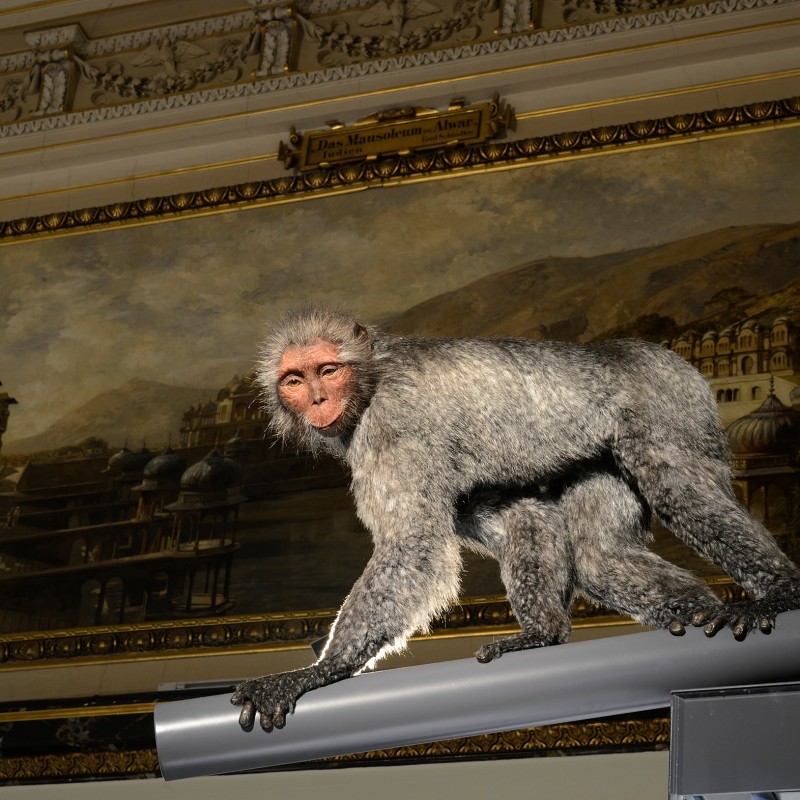 Alter: erwachsen | Größe:1,05 m | Gewicht: 29 kg | Kopfform: ähnelt einem Schimpansen | Gebiss: