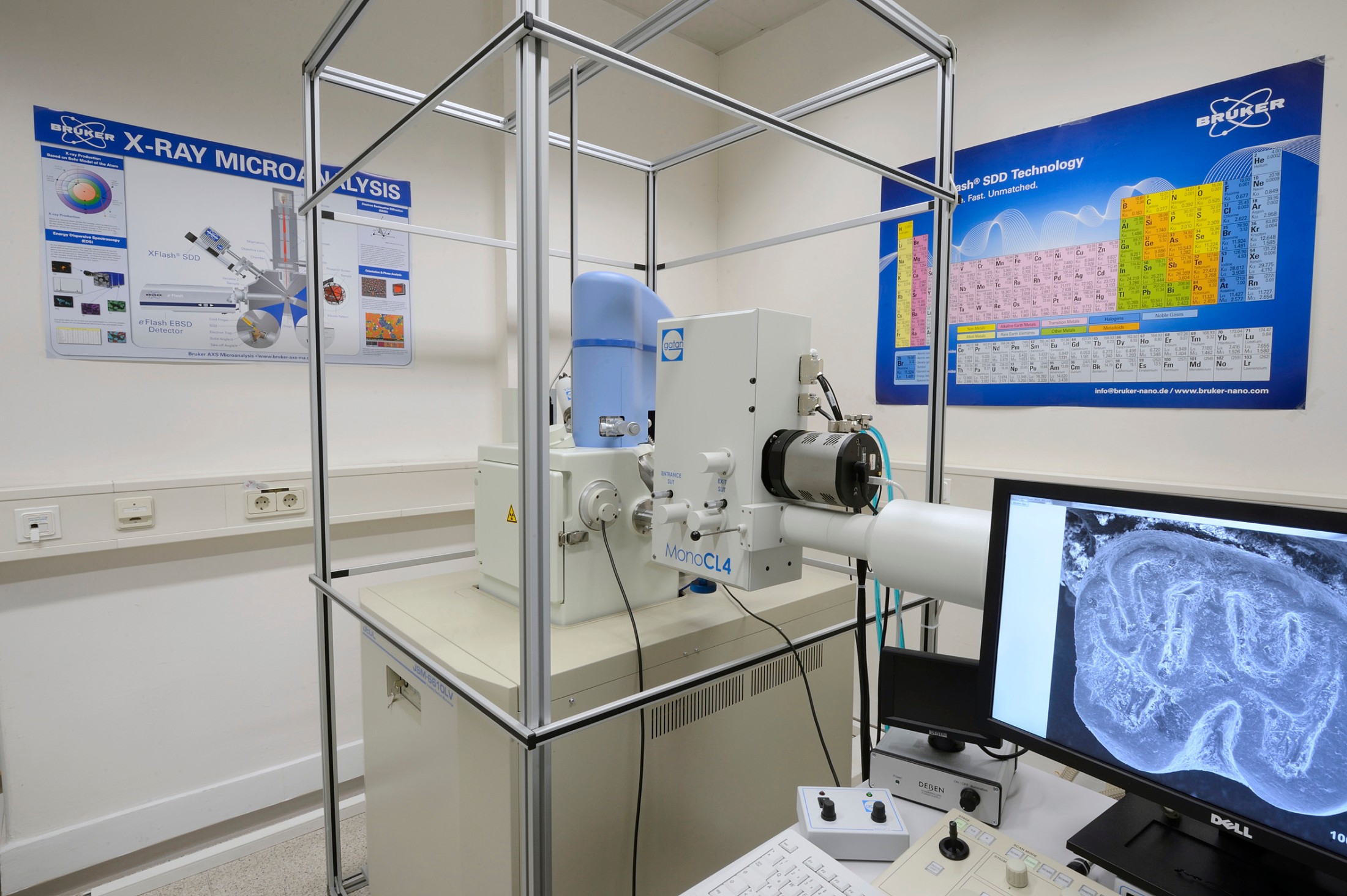 KL-Aufnahme des Minerals Zirkon. (Kathodolumineszenz-Einheit (KL))