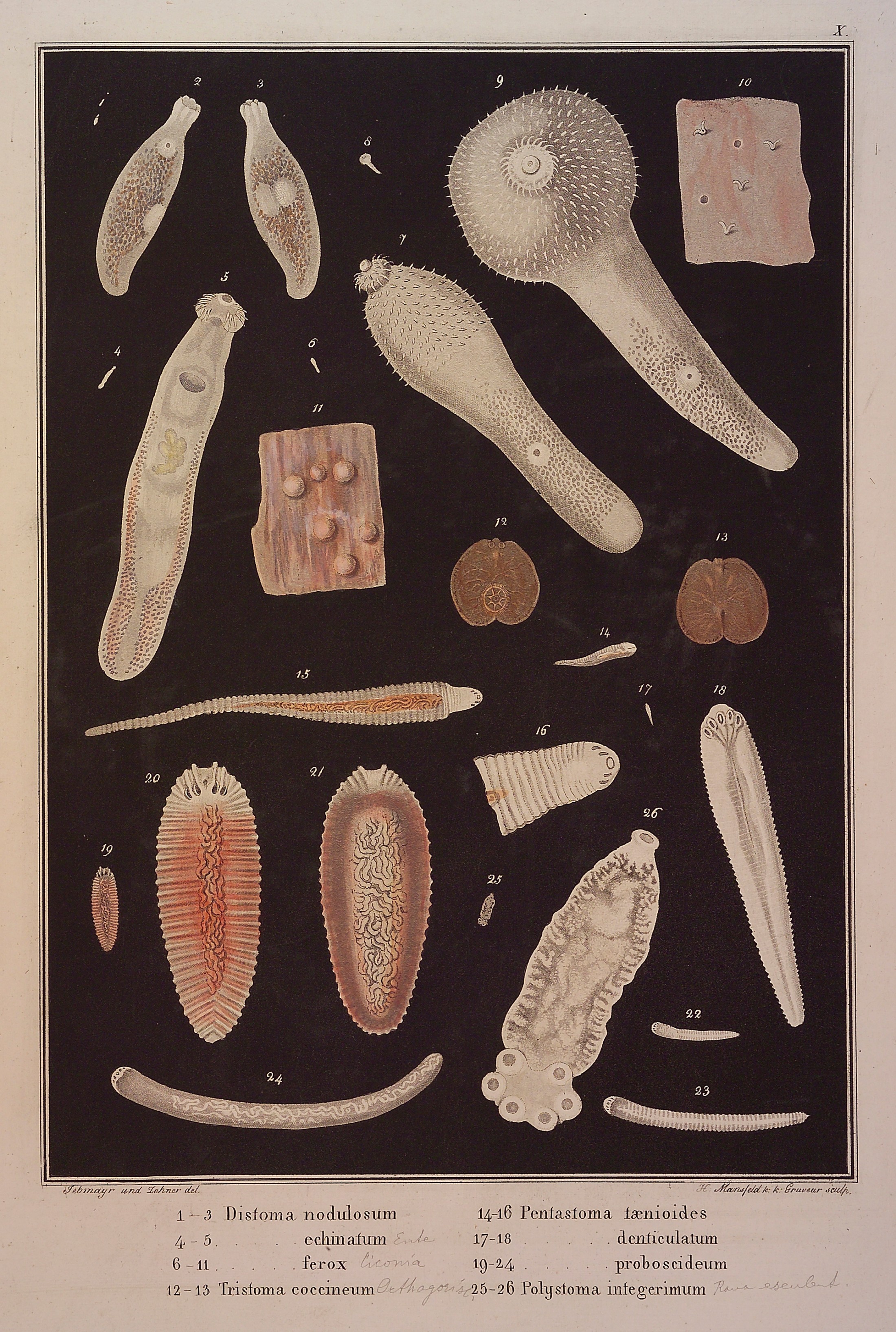 Tafel X aus Bremser J.G. 1824: "Icones Helminthum Systema Rudolphii Entozoologicum illustrantes"