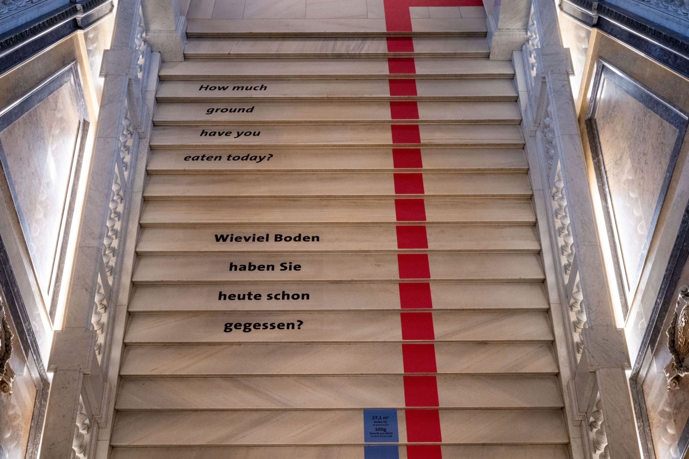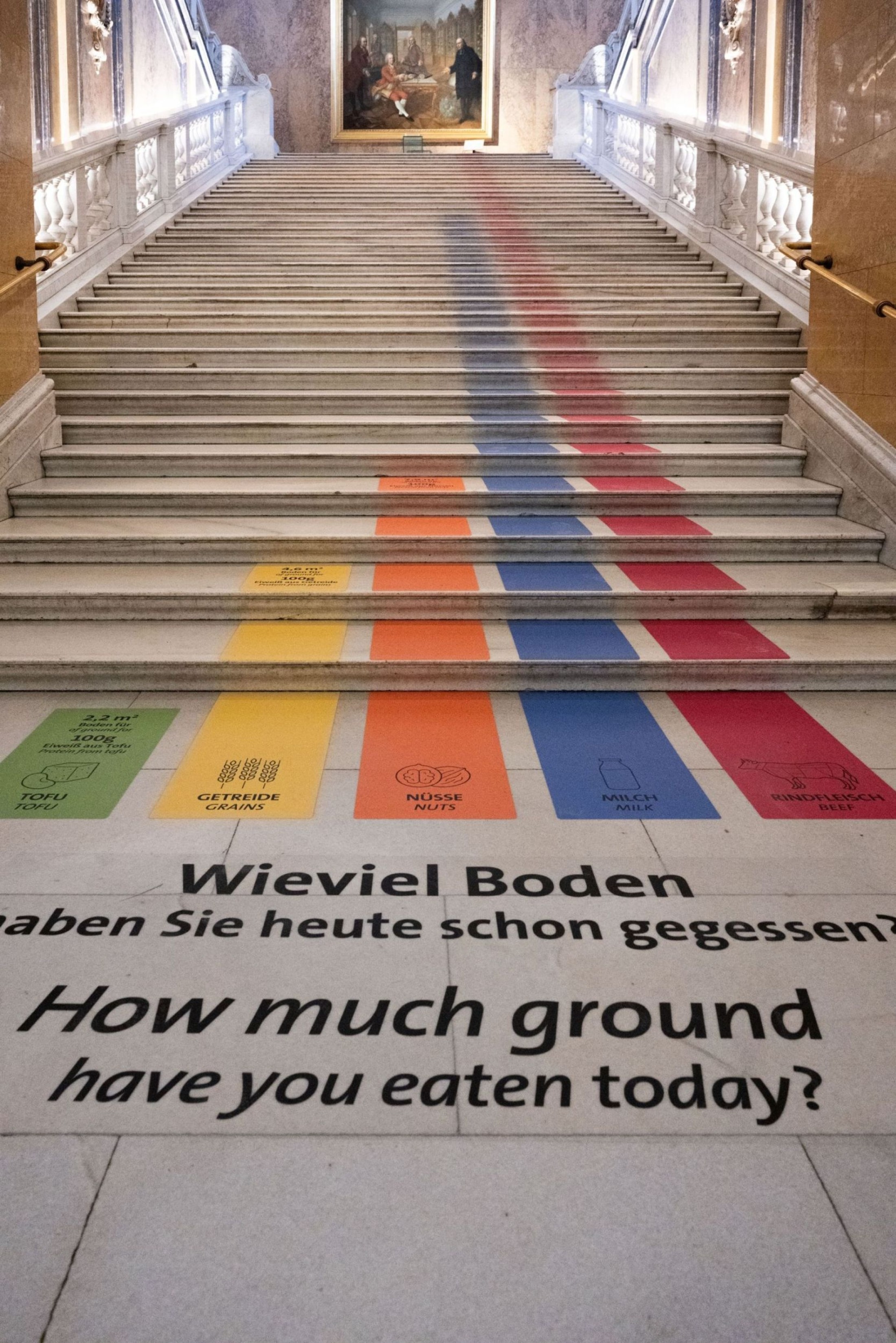 Eine Installation auf der Feststiege des NHM Wien zeigt, wie groß die Fläche