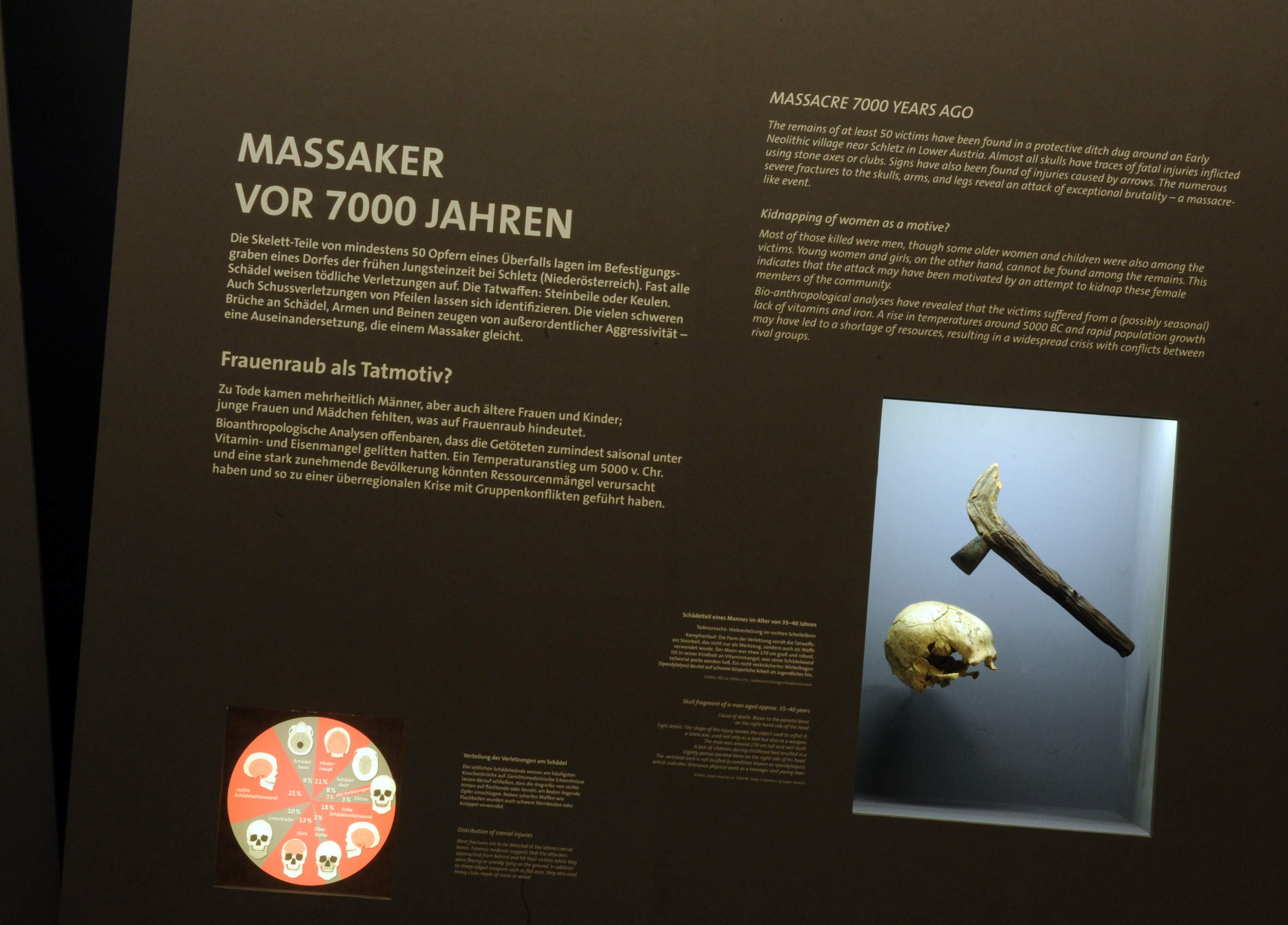 Vorab hat Nikolaus Täuber von der Austria Presse Agentur einen Blick auf die Ausstellung geworfen:Archäologische Zeugen kriegerischer Auseinandersetzungen stehen ab 24. Oktober im Mittelpunkt der neuen Sonderschau des Naturhistorischen