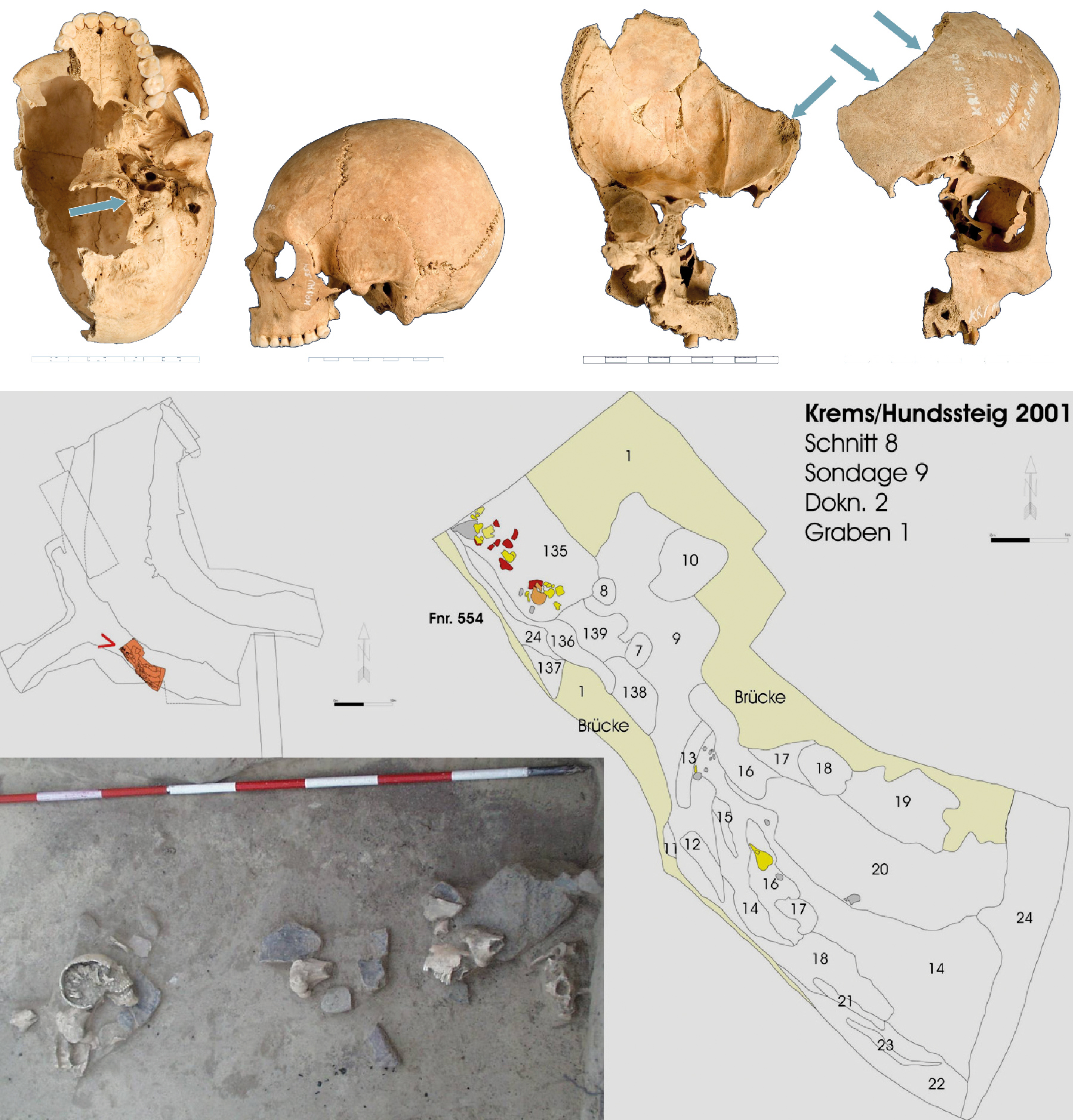 und Schädel mit Spuren von Gewalteinwirkung. Der Fund gilt als erster Nachweis von Krieg in Mitteleuropa.