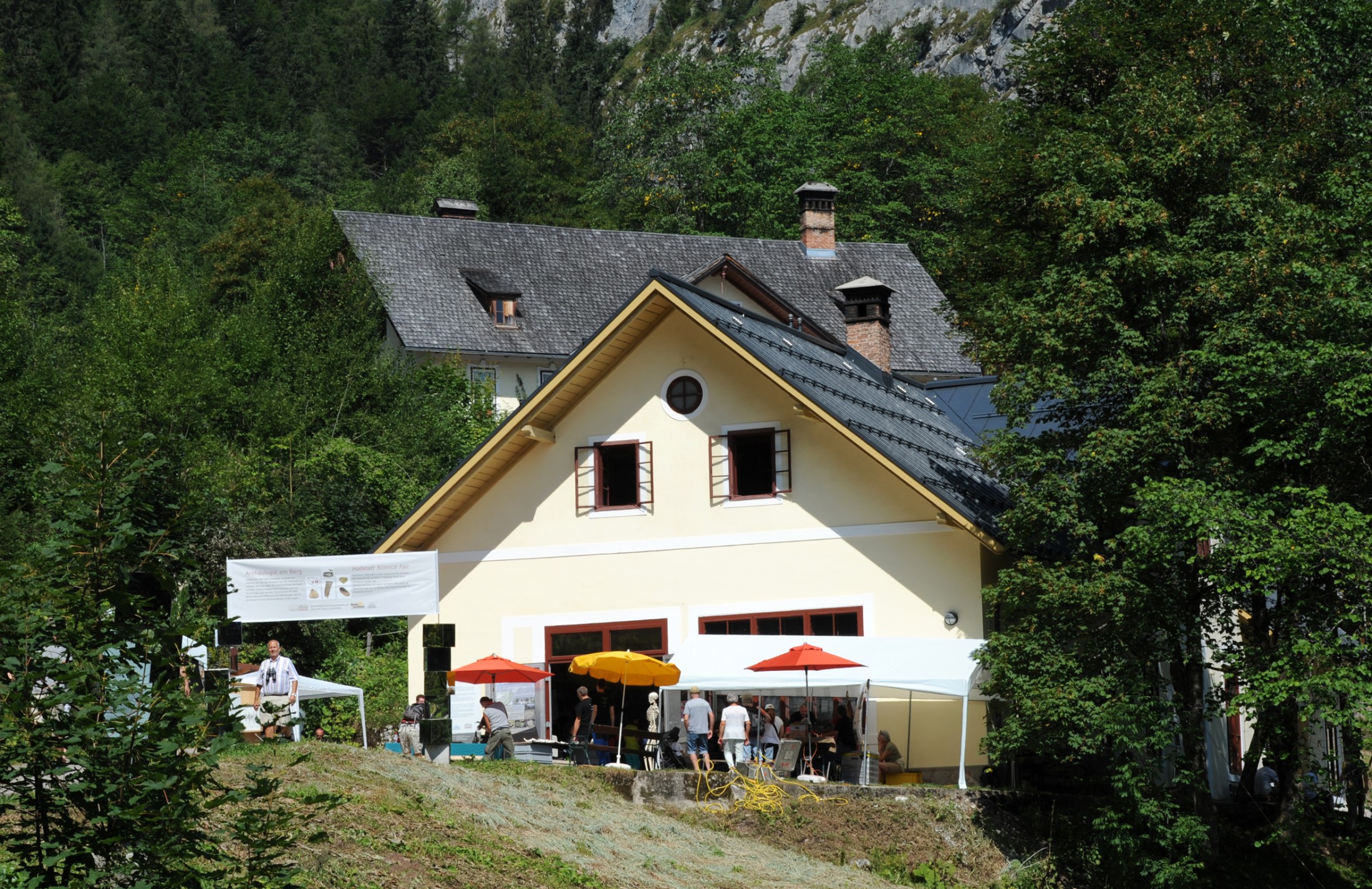 Präsentation der Forschungsarbeit an verschiedenen Ständen und Stationen in der NHM Wien-Außenstelle „Alte Schmiede“ am Salzberg in Hallstatt: