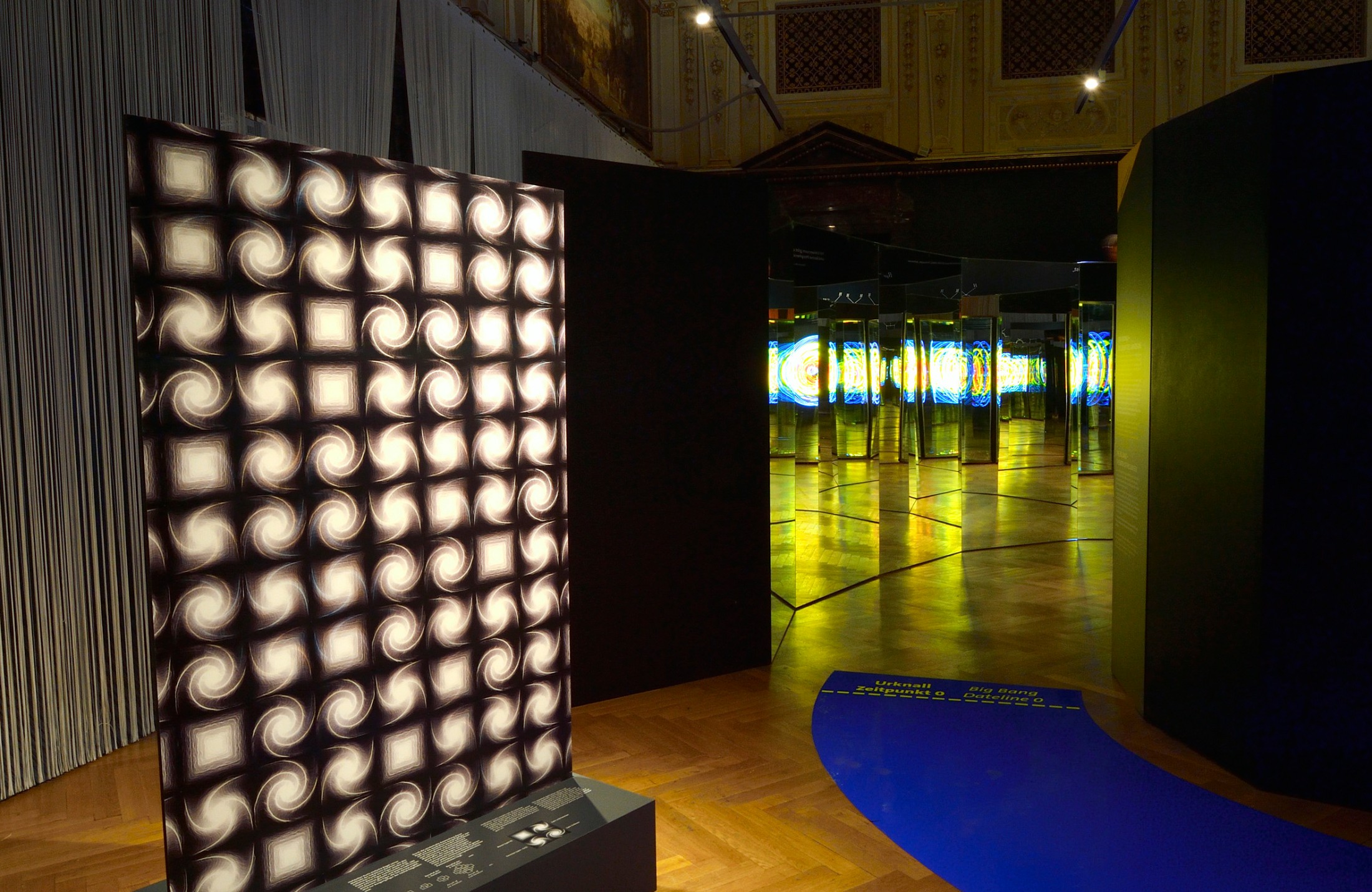 Durch die zeitgenössischen Werke von Kunstschaffenden wie Chris Henschke, Michael Hoch, Brigitte Kowanz, Hofstetter Kurt, Eva Schlegel und Manfred Wakolbinger eröffnen sich den Sinnen der Besucherinnen und Besucher zudem alternative visuelle und akustische Blickwinkel auf die große Menschheitsfrage, wie alles begann. Die Ausstellung lädt ein zu einer Spurensuche, die über 13 Milliarden Jahre zurück in die Vergangenheit führt, zum Ursprung des Universums.