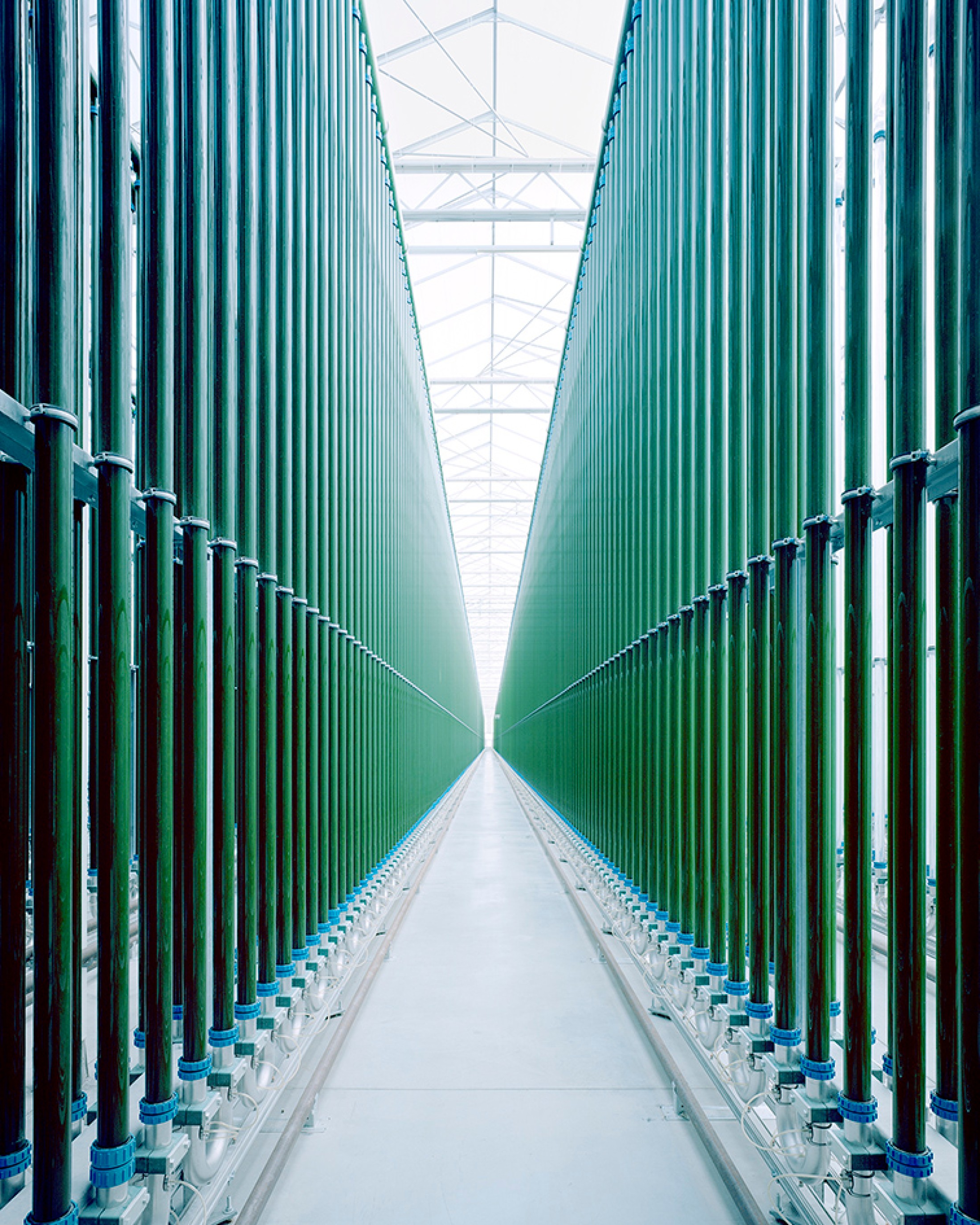 Gregor Sailer hält diese futuristisch anmutenden Produktionsstätten fotografisch fest. Seine Fotos stellen dabei zwei Systeme gegenüber: zum einen hochdiverse Agrosysteme, die viel menschliche Arbeitskraft benötigen, zum anderen eine KI-gesteuerte, automatisierte Landwirtschaft mit standardisierten Organismen und Prozessen – und dem Versprechen, im Gegensatz zur aktuellen industriellen Landwirtschaft ohne fossile Energie auszukommen.
