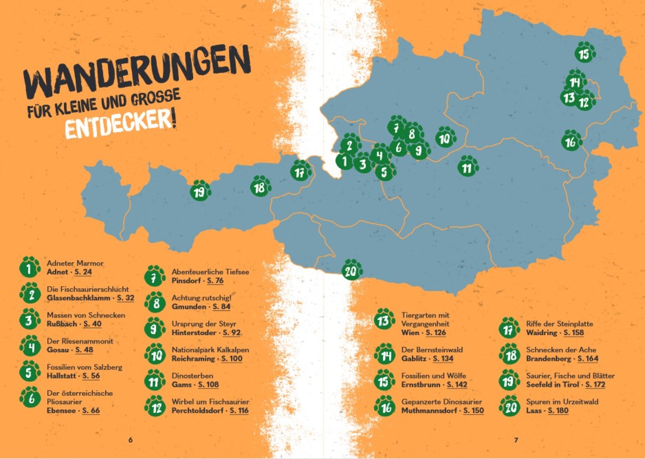 Wussten Sie, dass aus fossilen Fischen Tirols Fischöl und Medizin gewonnen wurde, dass Fischsaurier durch das Jurameer Österreichs pflügten oder riesige Ammoniten am Gosausee zu finden sind? Dass schneeweiße Riffe den Boden eines Wildparks mit Wölfen bilden, Wildschweine auf hunderte Millionen Jahre altem Meeresboden wühlen und kleine Meeressaurier Kärnten unsicher machten.