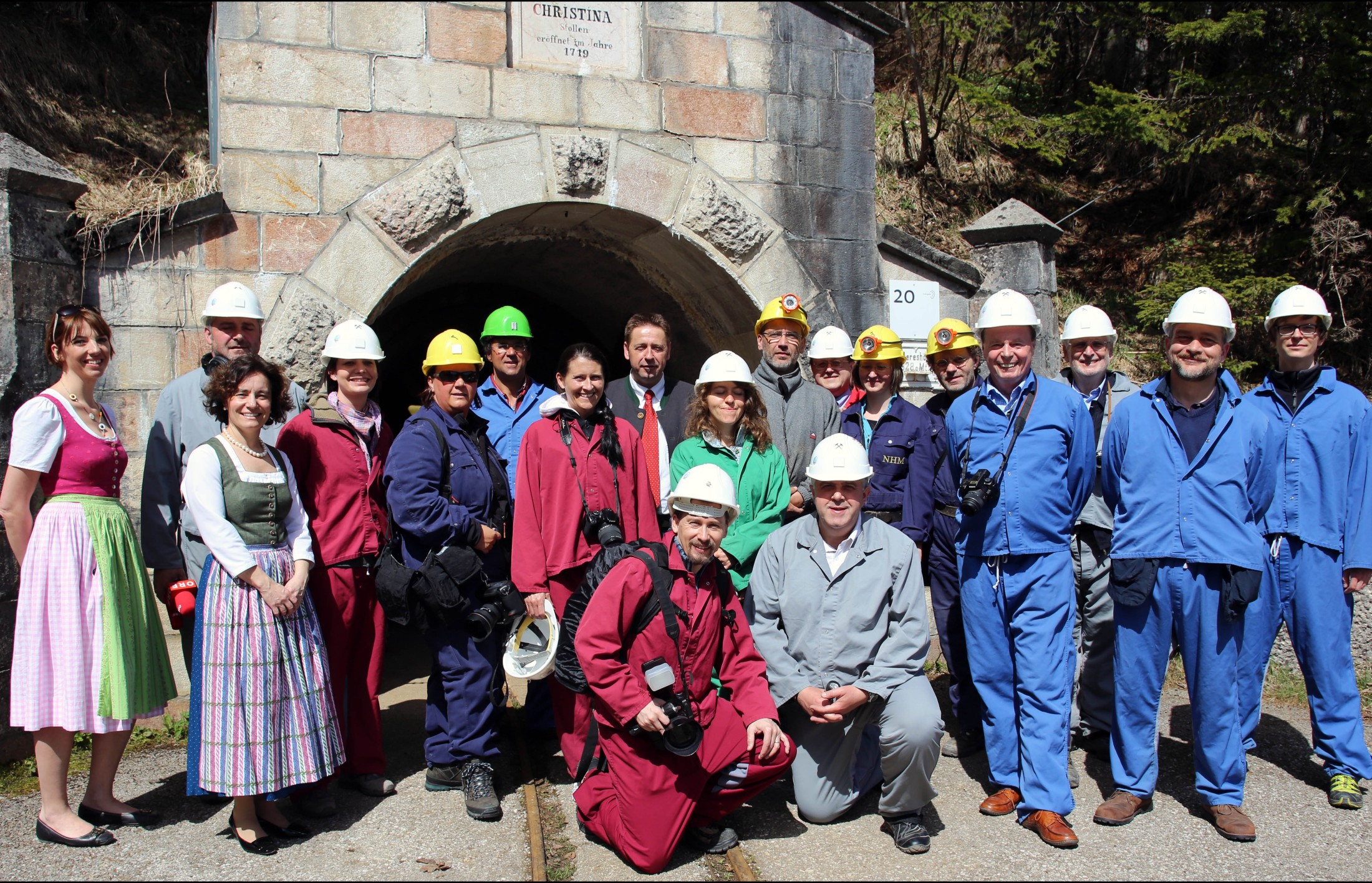 Umkleiden (Schutzkleidung, Helm, Grubenlampe) in der Alten Schmiede des NHM Wien