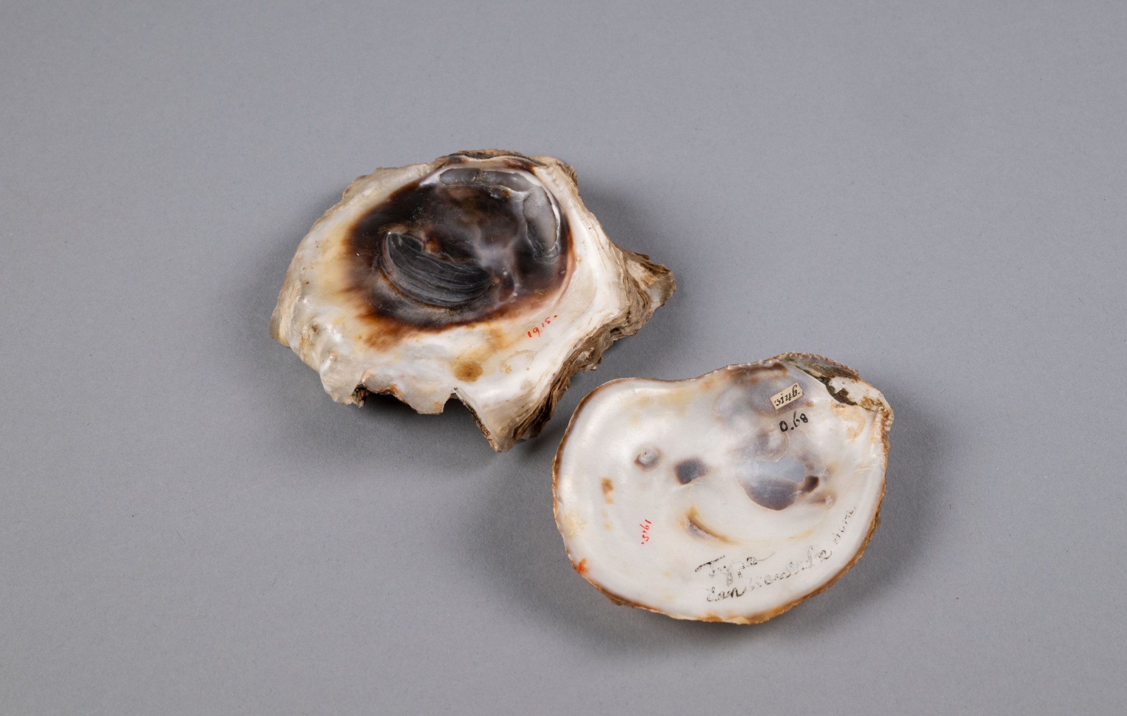 Originalexemplar einer von Born beschriebenen Austern-Art mit den dazugehörigen Bildern aus der Druckversion des neuen Typenkatalogs