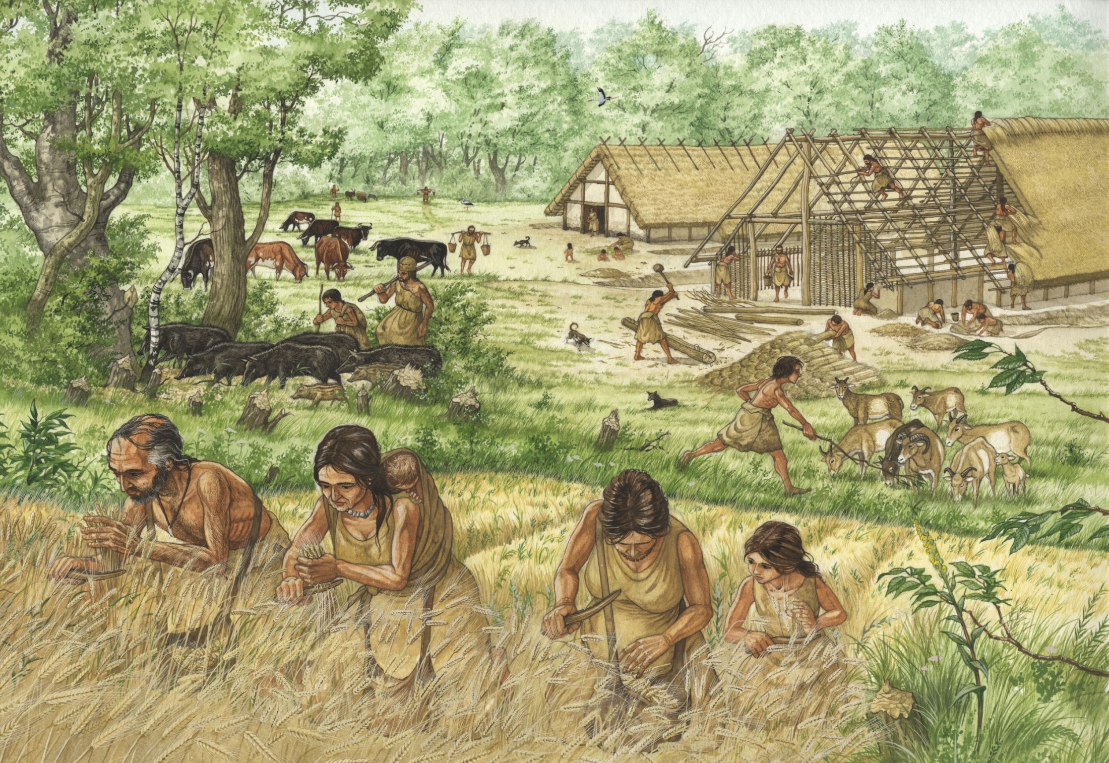 Schematische Darstellung des Lebens im frühen Neolithikum