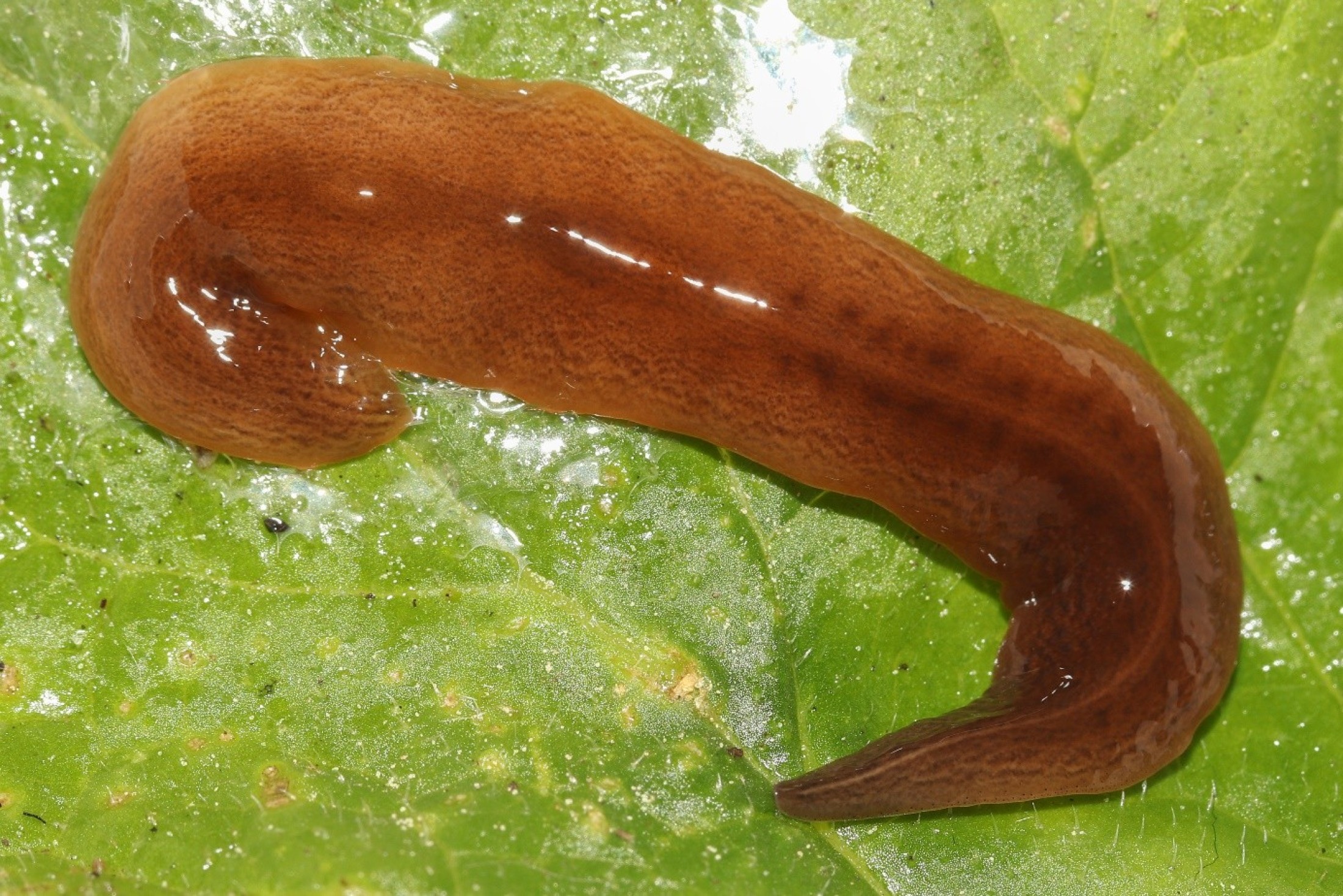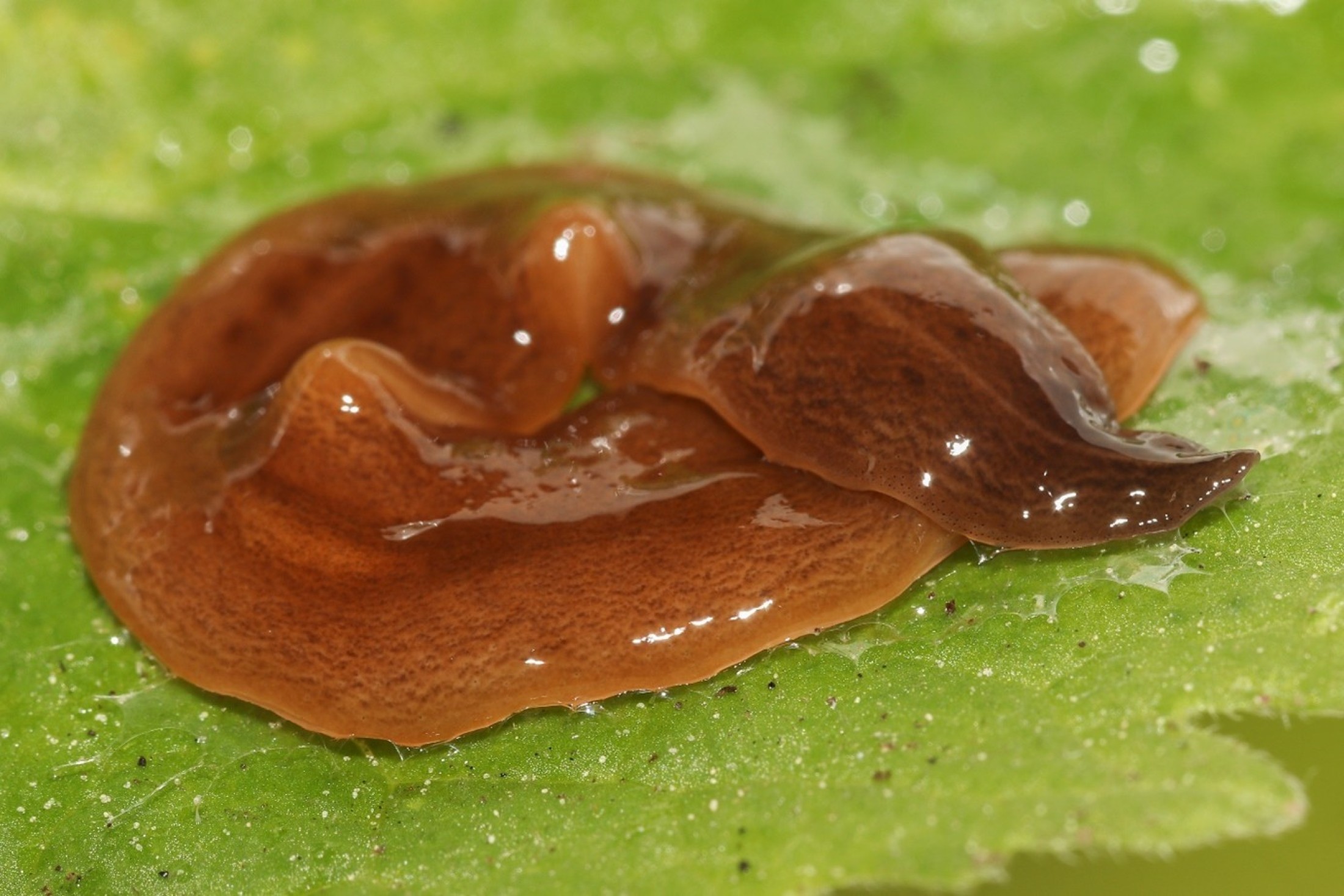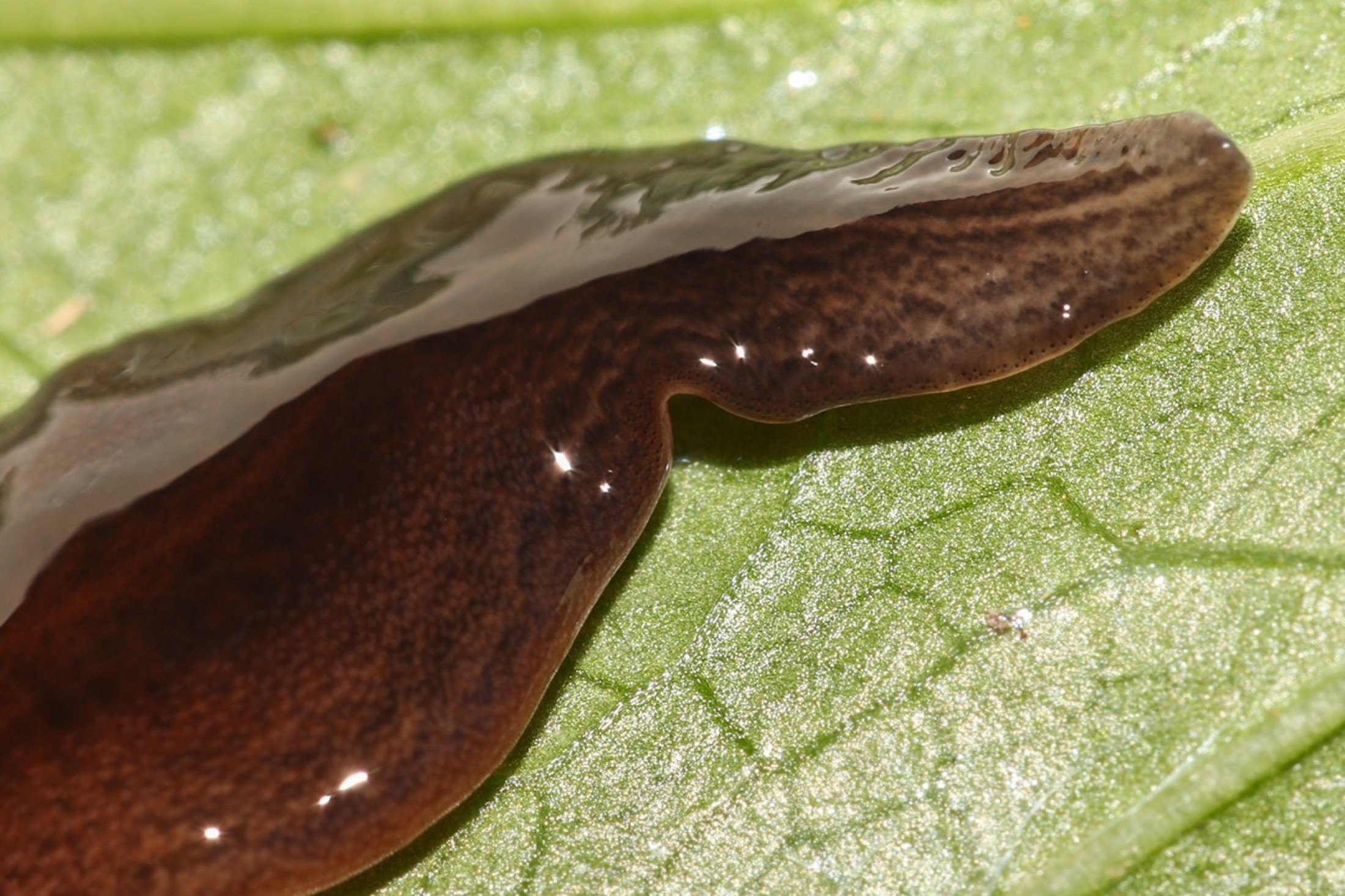 In Österreich gefundenes Exemplar der Plattwurmart Obama nungara. Vorderende rechts.