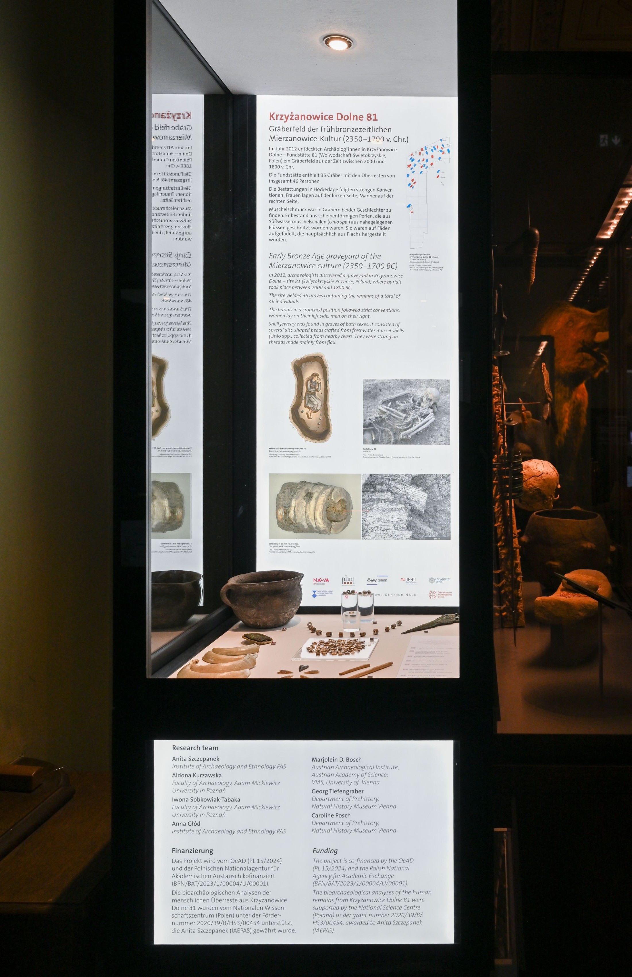 Ein Team aus polnischen und österreichischen Forscher*innen der Polnischen Akademie der Wissenschaften, der Adam-Mickiewicz-Universität Poznań, der Österreichischen Akademie der Wissenschaften, der Universität Wien (VIAS) und des Naturhistorischen Museums Wien untersuchte in einem zweijährigen Forschungsprojekt die Schmuckensembles der bedeutenden frühbronzezeitlichen Gräberfelder von Gemeinlebarn (Niederösterreich) und Krzyżanowice Dolne 81 (Polen). Gefördert wurde das Projekt von der Polnischen Nationalagentur für Akademischen Austausch und dem OeAD. Ziel war es zu verstehen, wie diese Ornamente getragen, auf der Kleidung befestigt und im Grab arrangiert worden waren – und welche Geschichten sie über das Leben der Menschen jener Zeit erzählen.