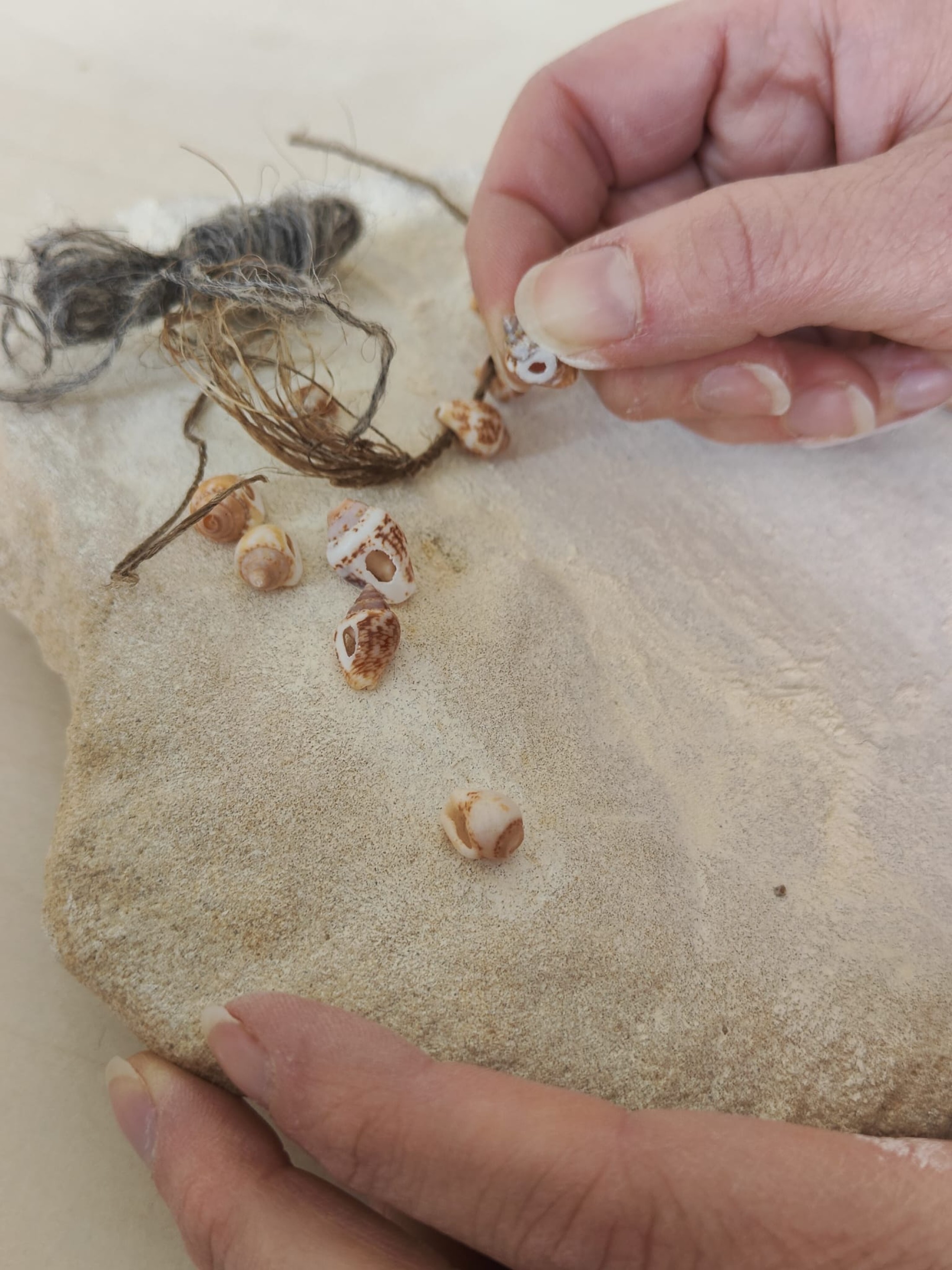Experimentelle Herstellung einer Kette aus Columbella rustica Schnecken