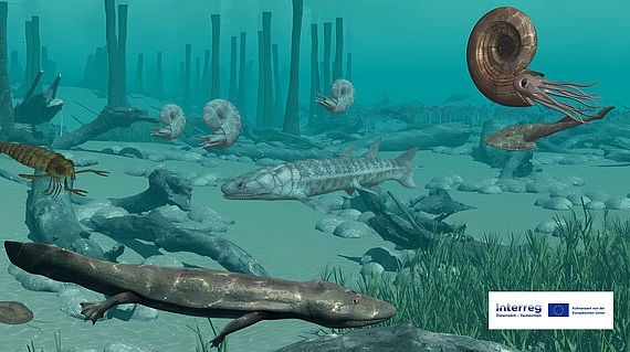 Eine multimediale Zeitreise durch 380 Millionen Jahre Erdgeschichte, vom Erdaltertum bis heute, entwickelt im Rahmen des EU-Interreg-Projekts GeoTT ATCZ00013.