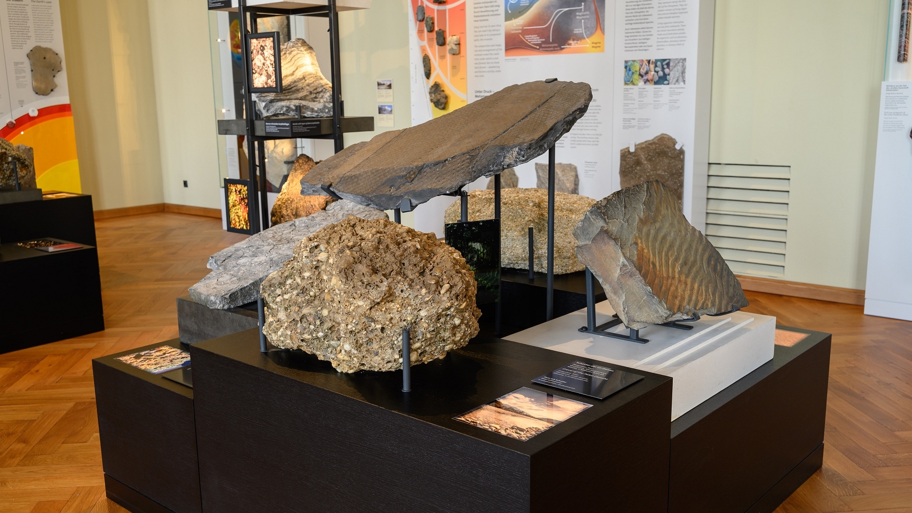 Wir ergründen erdgeschichtliche Entwicklungsschritte, die zu Meilensteinen in der Evolution geführt haben, und spannen dabei den Bogen über Milliarden Jahre von den Anfängen unseres Planeten bis in die geologisch jüngere Vergangenheit. Unser Rundgang führt uns dabei durch die Schausäle der Geologisch-Paläontologischen Sammlung.